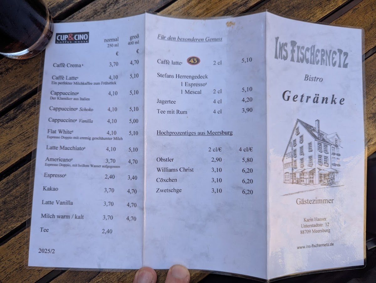 Welcome to Wirtshaus zum Pfannenstübchen, a charming German restaurant nestled in the picturesque Spitalgasse of Meersburg. This cozy eatery captivates with its warm ambiance and a menu that celebrates authentic German flavors. Guests rave about the delightful homemade Spätzle and Maultaschen, both showcasing the culinary artistry that defines this establishment. The Flammkuchen receives high praise, described as the best some have ever tasted. Vegetarian options, like the savory overcooked Feta and refreshing watermelon salad, ensure there's something for everyone.